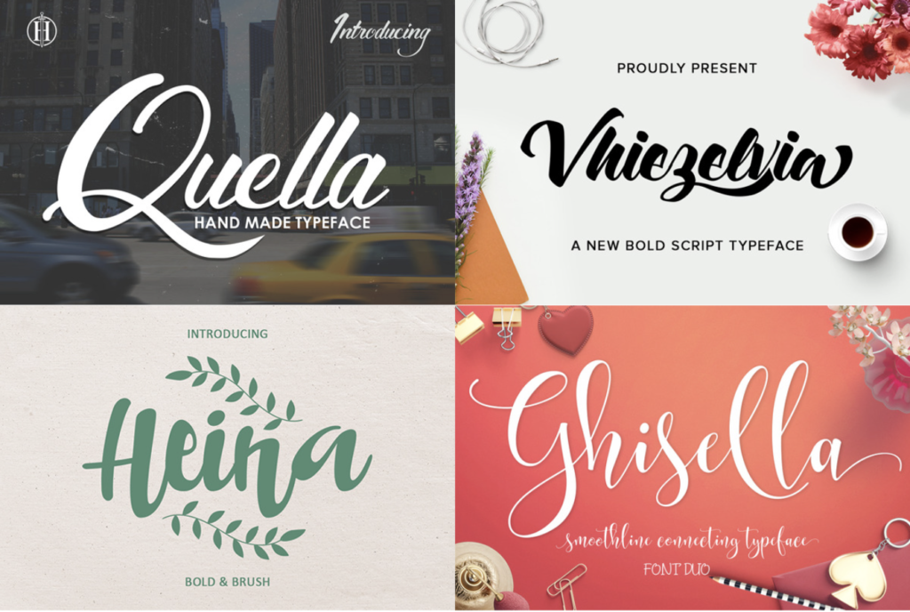While we thought cursive writing was a trend of the past; its vintage style has now come back into trend. If you have not been paying attention, you might have missed the fact that calligraphy is everywhere nowadays. There are even startups that teach calligraphy classes and believe it or not, these workshops have been very successful of late. Imagine if you could design your very own script typeface; you already have an audience you could sell these fonts to. Who knows, maybe even your current handwriting could be turned into a retro or vintage typeface. Here are some examples of popular script typefaces on Designs.ai right now: