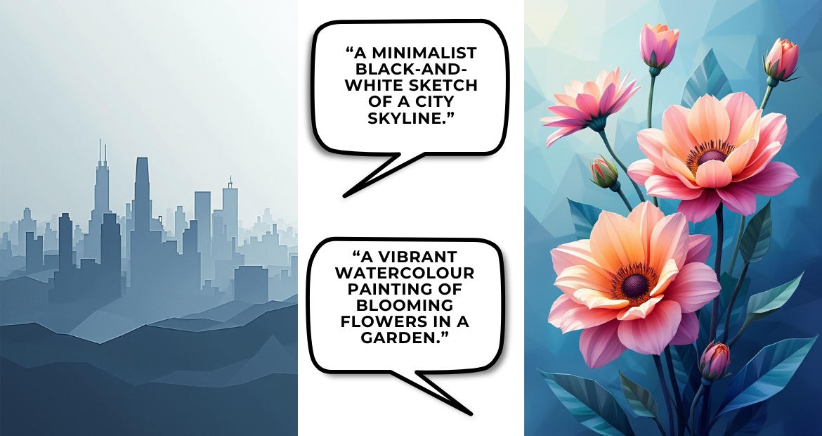 Use Descriptive Words: Include colours, textures, and other visual elements (e.g., “a tranquil lake surrounded by misty mountains at dawn”).